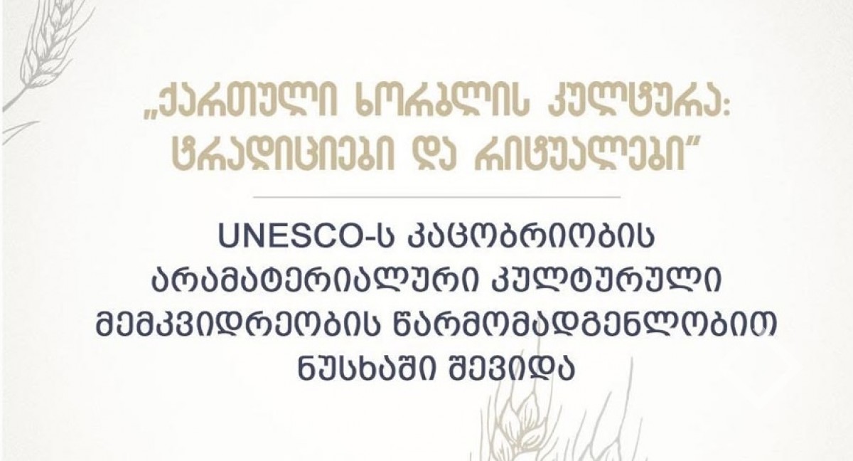 იუნესკო-მ „ქართული ხორბლის კულტურა: ტრადიციები და რიტუალები“ კაცობრიობის არამატერიალური კულტურული მემკვიდრეობის წარმომადგენლობით ნუსხაში შეიტანა